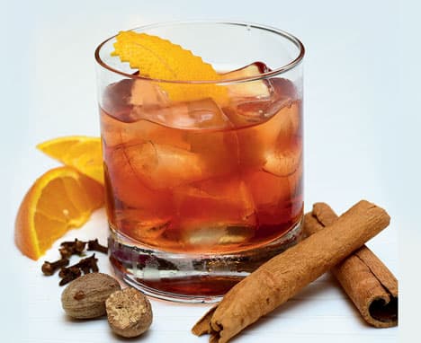 “This cocktail features the usual Campari and Martini Rosso vermouth but includes a cinnamon, clove and bay leaf infused-gin, giving an Indian slant to the Italian drink. Served on the rocks and garnished with orange peel, this crisp cocktail has a strong aromatic flavour.”